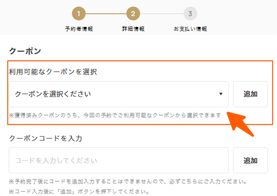 ※「利用可能なクーポンを選択」は、対象クーポンを獲得している場合のみ表示されます。