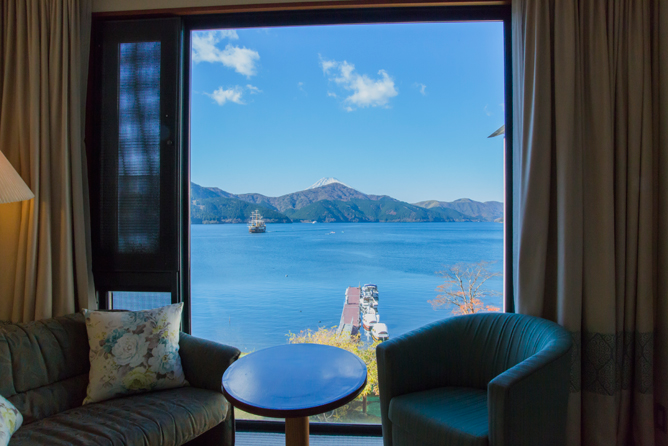 ガーデンから望む芦ノ湖